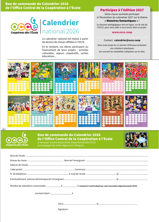 Bon de commandes : Agendas coops, calendriers, gobelets réutilisables, fichiers pédagogiques .....